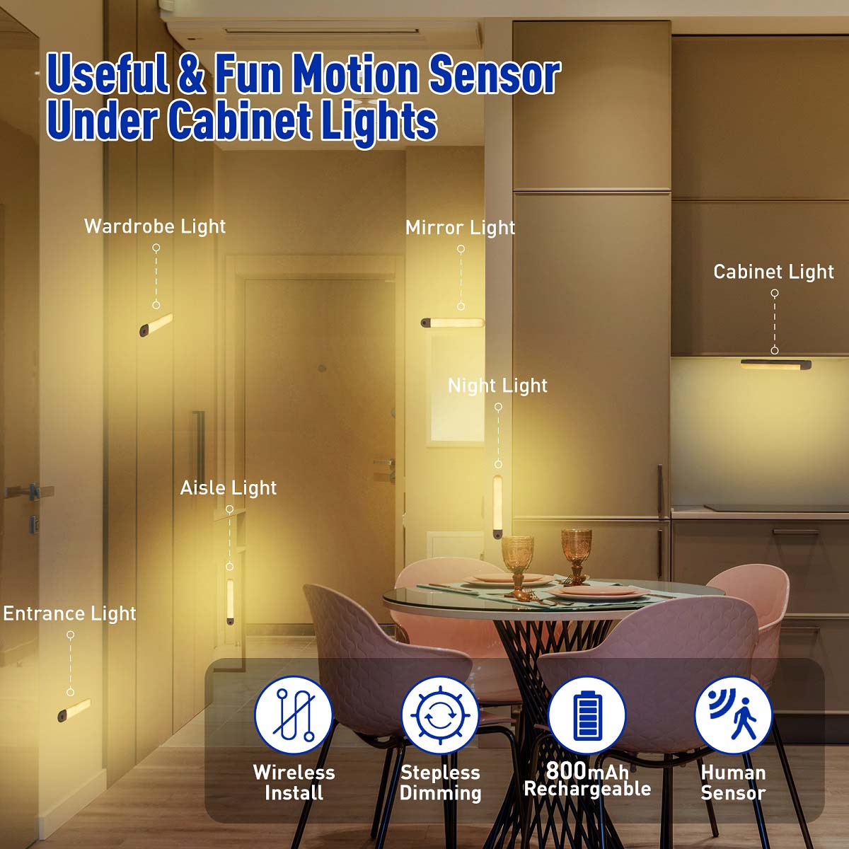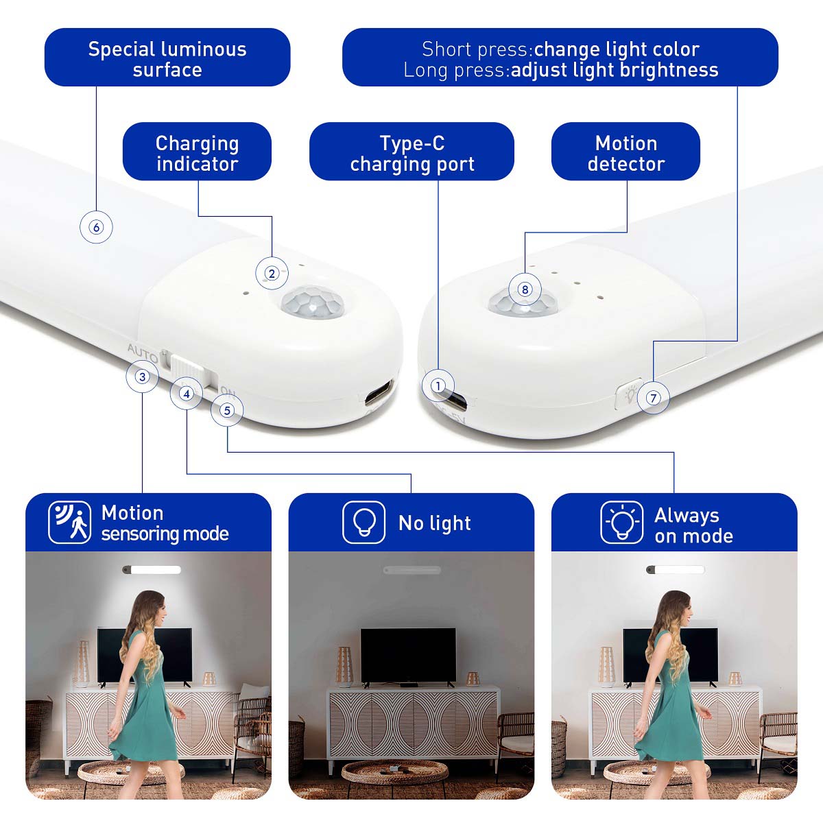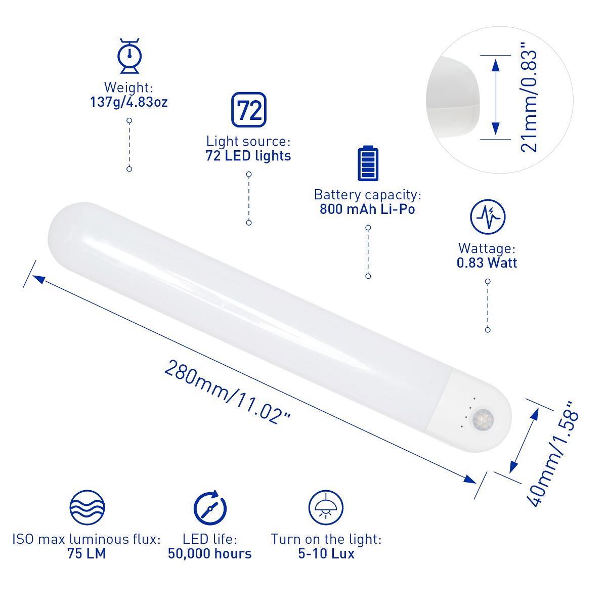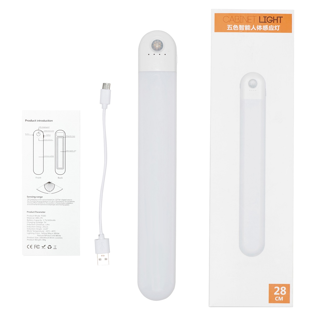 P28D Rechargeable Motion Sensor Light,PIR Wardrobe Sensor Light,Magnetic Motion Activated Light,Under Cabinet Lighting, Wireless USB Rechargeable Sensor Light Indoor Motion Detection 11.02" |